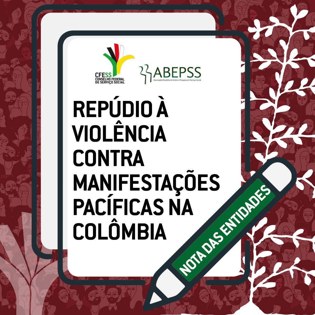 O Serviço Social brasileiro, por meio de suas entidades representativas – Conselho Federal de Serviço Social (CFESS) e Associação Brasileira de Ensino e Pesquisa em Serviço Social (Abepss), REPUDIA a violência estatal contra as manifestações pacíficas na Colômbia e APOIA os protestos populares neste dia 5 de maio.