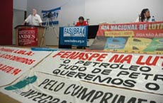 No auditório, o Fórum Nacional de Lutas Contra o PLP Nº 92/2007 recebeu o apoio de alguns deputados como Chico Alencar (PSol/RJ), Vicentinho (PT/SP), Jô Moraes (PCdoB/MG), Chico D"ângelo (PT/RJ) e Solange Almeida (PMDB/RJ).