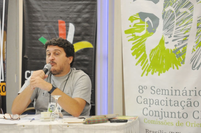 Conselheiro do CFESS Maurílio Matos fala na mesa sobre o sigilo profissional (foto: Diogo Adjuto)