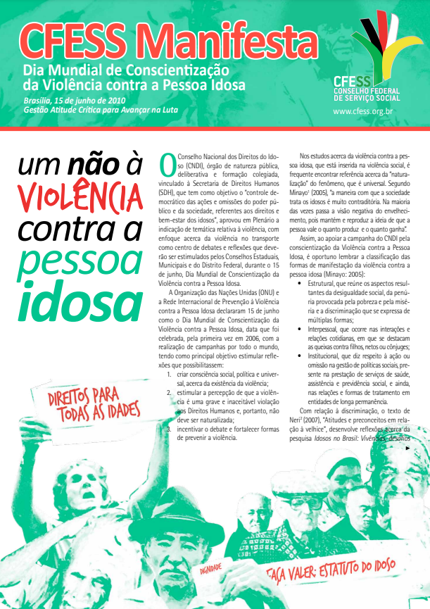 Data de Publicação: 15/06/2010Um não à violência contra o Idoso