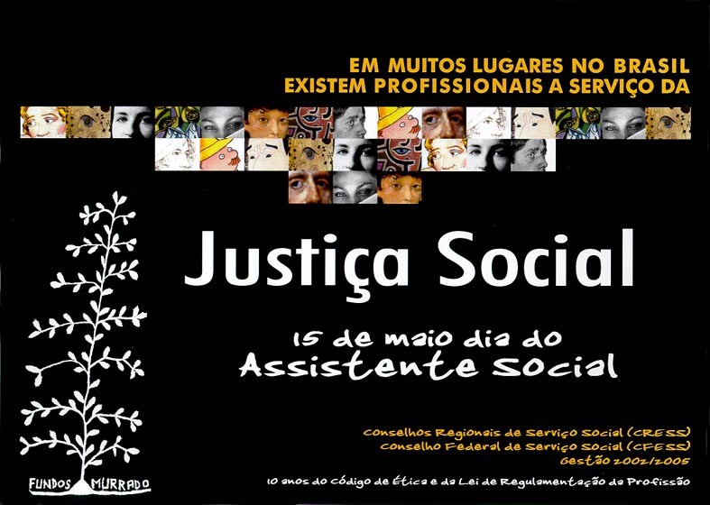 Data de Publicação: 08/07/200915/05/2003 - Cartaz - Dia do Assistente Social - Tema: Em muitos lugares do Brasil existem profissionais a serviço da Justiça Social